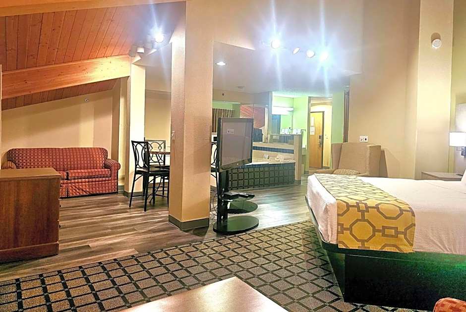 The hot tub is a top feature of this suite. The unit has 1 bed.
